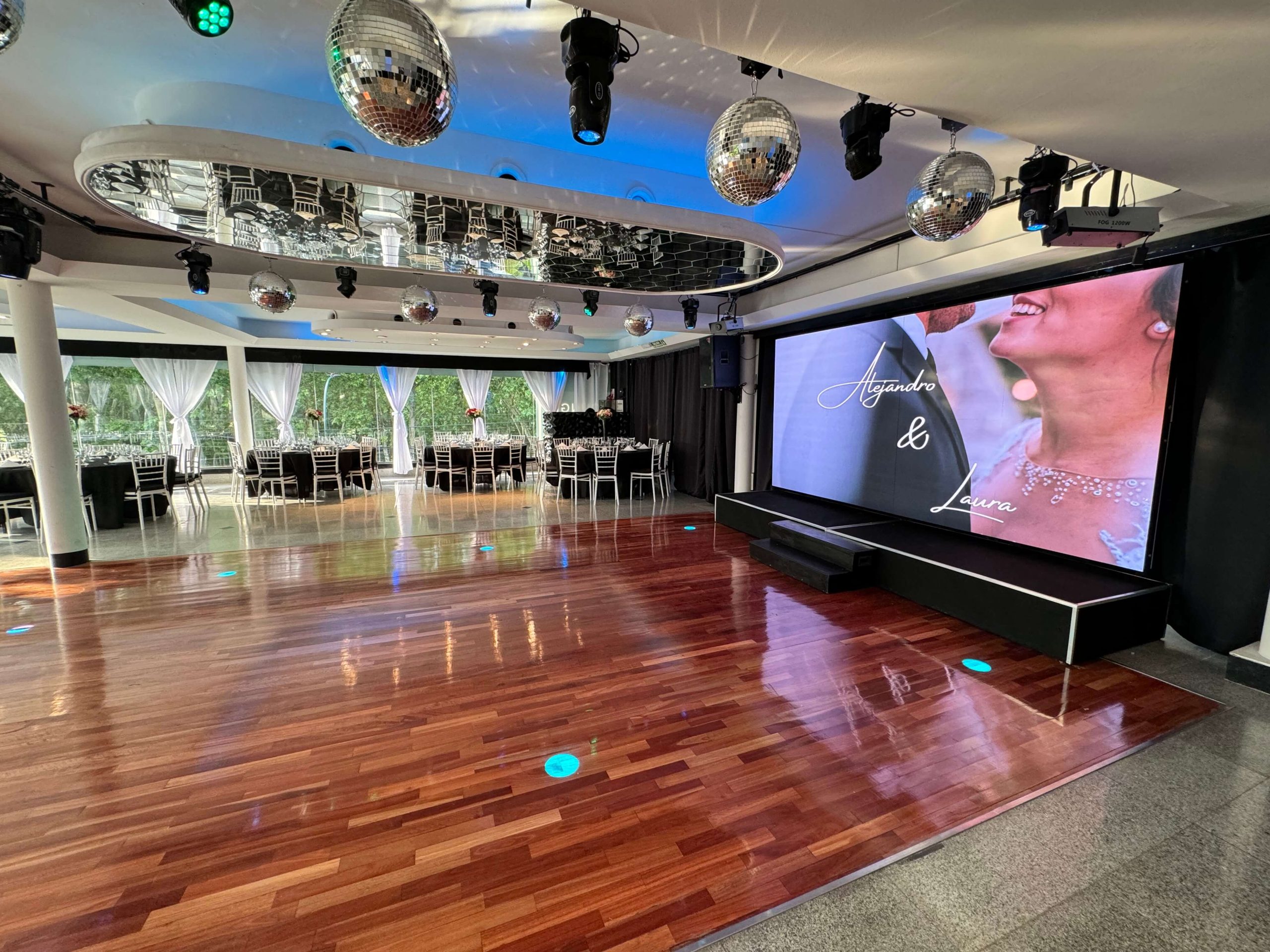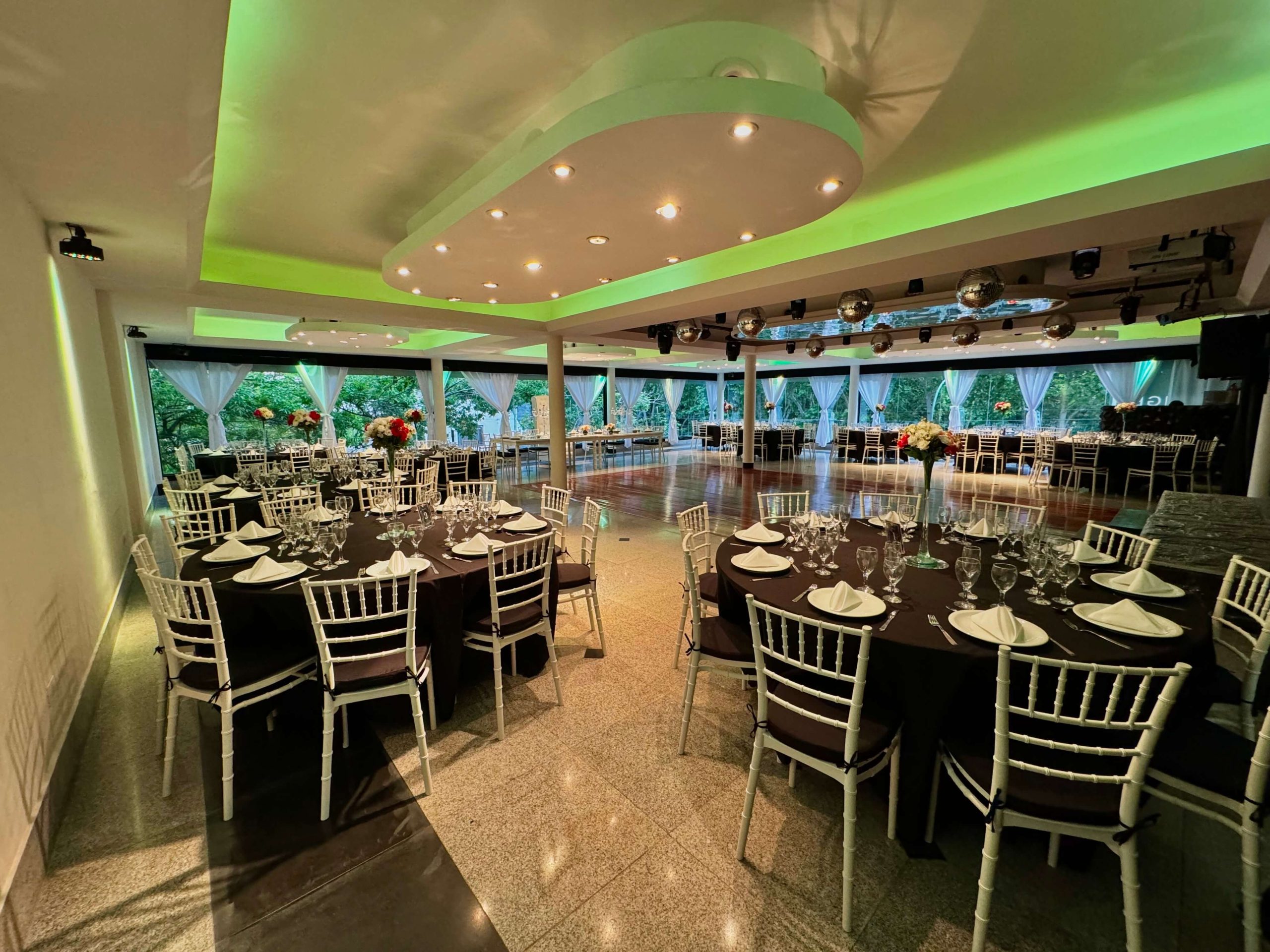 Equipado con tecnología de sonido y luz de última generación y una pantalla LED en la pista de baile, este salón ofrece un ambiente elegante y vistas maravillosas, asegurando que cada celebración sea una experiencia única y exclusiva.